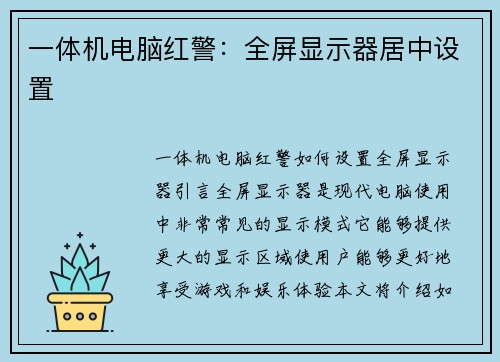 全屏显示器是现代电脑使用中非常常见的显示模式,它能够提供更大的显示区域,使用户能够更好地享受游戏和娱乐体验。本文将介绍如何在一体机电脑上设置全屏显示器,以红警游戏为例进行详细阐述。