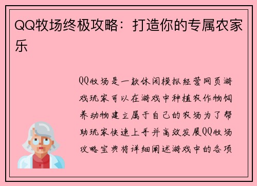 QQ牧场是一款休闲模拟经营网页游戏,玩家可以在游戏中种植农作物、饲养动物,建立属于自己的农场。为了帮助玩家快速上手并高效发展,《QQ牧场攻略宝典》将详细阐述游戏中的各项攻略。