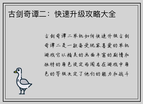古剑奇谭二单机的快速升级需要选择合适的角色、合理分配属性点、完成主线任务、挑战副本和活动、利用技能和装备、参与公会和社交活动、合理利用游戏系统,同时保持耐心和坚持。希望本文的介绍能够对玩家们在古剑奇谭二的升级过程中有所帮助。愿你在游戏中获得更多的乐趣和成就!